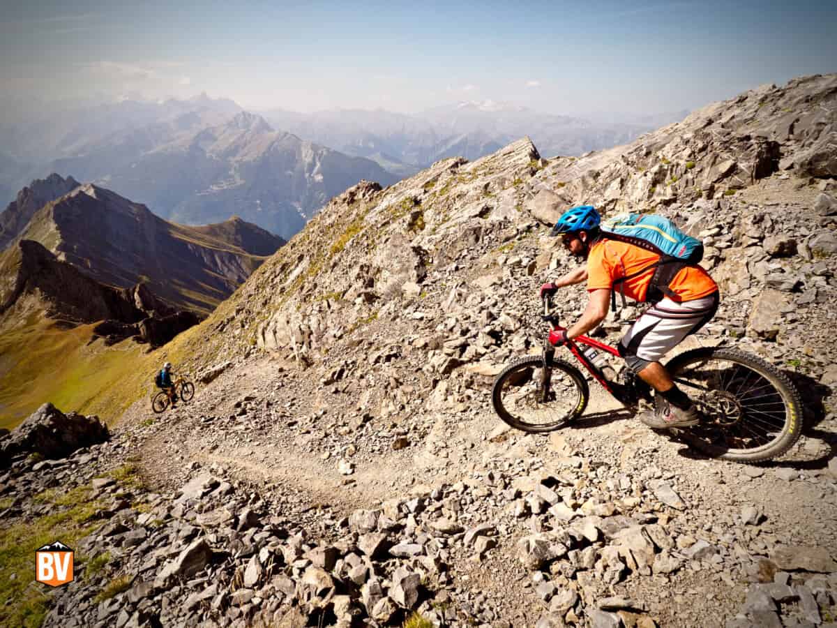 Riding type: Everything the Alps has to offer! So this is technical alpine riding at its finest. As such you should have experience of riding natural technical singletrack in the Alps however – we will often be hike-a-biking up and riding tight switchbacks, steep rock gardens and every other delight mother nature has to offer on the way down. Unless you already have significant ‘natural’ alpine experience then we recommend you come on a ‘normal’ BV trip first to prepare yourself for the AlpPacker.