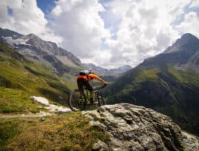How technical is it? We have kept the route as flowing as possible but loads of the best trails in the Alps are quite techy! The majority of climbing is on double track or tougher singletrack, without that many hike-a-bikes over 45 minutes. But remember, there aren’t many hikes in the UK over 45 minutes either! The descents are simply mind blowing and, if you have the skills, totally rideable with the odd rear wheel hop in a tight corner and a certain ease in steep, exposed alpine terrain.